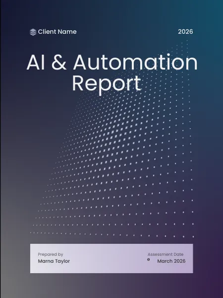 It outlines clear areas for improvement, recommended automation opportunities, and a prioritized roadmap for implementation. You'll also receive insight into expected impact, including time savings, performance gains, and opportunities to scale more effectively.